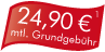 Monatliche Grundgebühr: 24,90 EUR; Mindestvertragslaufzeit: 24 Monate; einmalige Anschlussgebühr: 19,95 EUR; Telefonflatrate in alle deutschen Mobilfunknetze und das deutsche Festnetz (ohne Sonderrufnummern); SMS-Flatrate in alle deutschen Mobilfunknetze, Internet-Flatrate bis zu einem Datenvolumen von 1 GB/Monat mit max. 7,2 MBit/s im Download, danach max. 64 KBit/s; SMS-Kosten (Ausland): 0,0714 EUR/SMS - 0,5900 EUR/SMS; MMS-Kosten (In- und Ausland): 0,39 EUR/MMS - 0,69 EUR/MMS; Service 0800: 0,00 EUR/Min.; andere Service-, Sonderrufnummern und Auskunftsdienste werden von primacall gesondert in Rechnung gestellt; detaillierte Minutenpreise finden Sie in der Tarifübersicht; alle Preise inkl. MwSt.